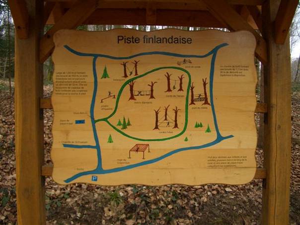 Il s’agit d’une boucle de 500 m en forêt, faite d’une épaisse couche de copeaux de bois, idéale pour la course à pied. Ce parcours est parsemé de 9 installations ludiques développant la force, l’équilibre et la proprioception de son corps, plus ou moins difficiles à effectuer (cage de suspension, assiettes, pont du diable, corde de tarzan, pont sur la rivière, poutres folles, cordes folles, poutre d’équilibre, échelle horizontale).